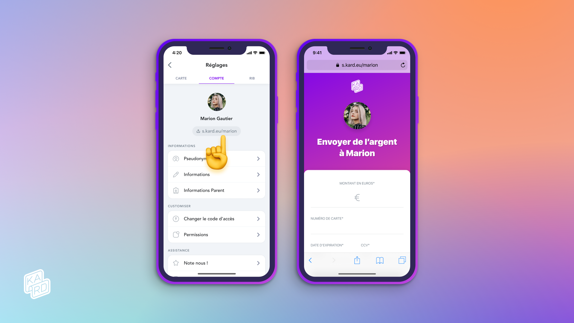 Izi. Grâce à ton lien, la personne qui veut t'envoyer de l'argent aura simplement à sortir sa carte bancaire et procéder à un paiement ultra sécurisé comme lors d’un achat en ligne classique. En quelques secondes, l'argent arrive sur ton compte Kard. C’est aussi simple que ça !