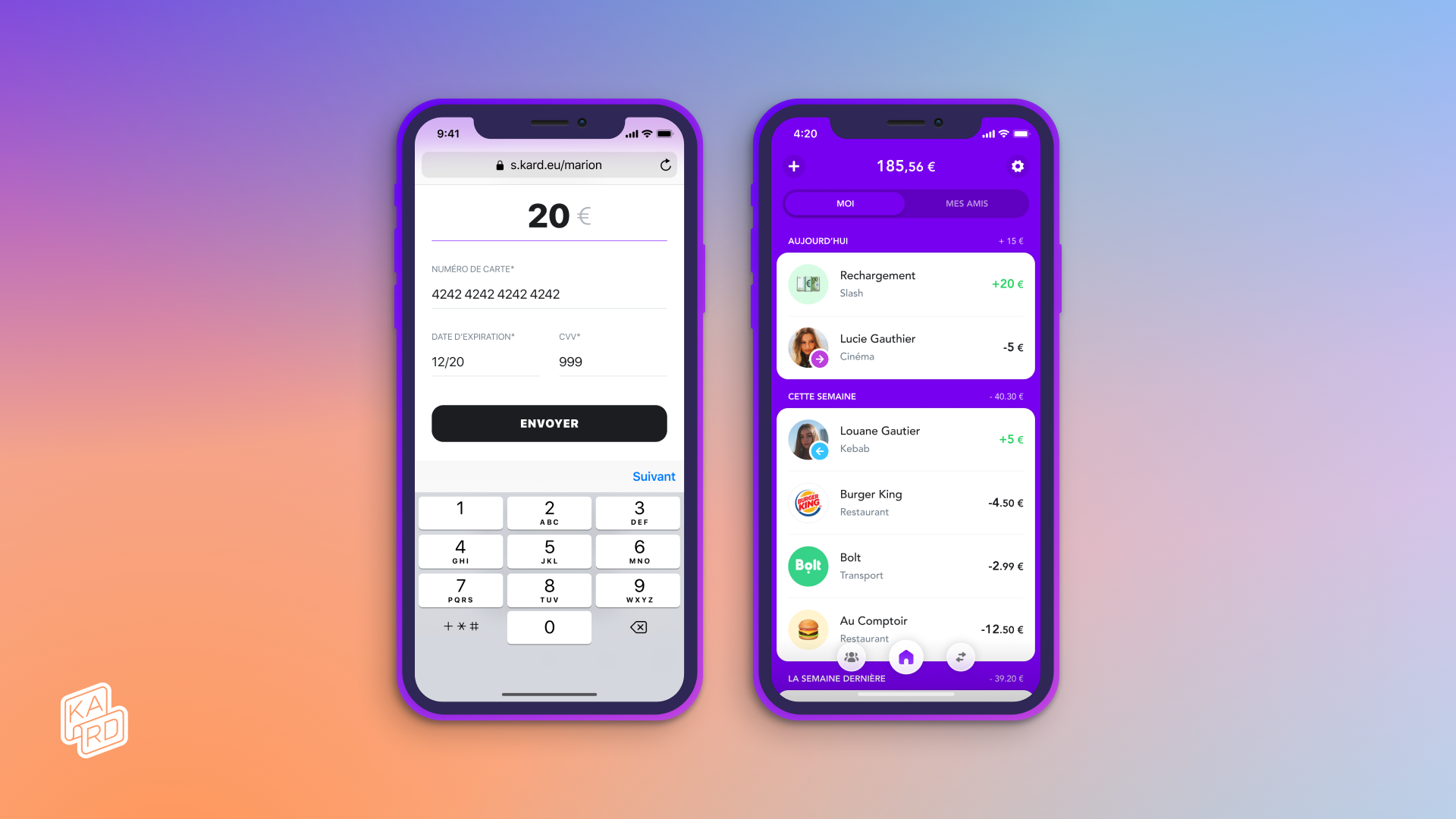 Vu que t’es pas simplement sympa mais plutôt TRÈS sympa, tu lui indiques qu’il y a une appli cool dénommée Kard avec laquelle il pourrait envoyer et recevoir de l’argent instantanément au cas où il oublie sa carte. En plus, s’il utilise ton code de parrainage à l’inscription, il gagne un euro. T’es vraiment son meilleur pote.